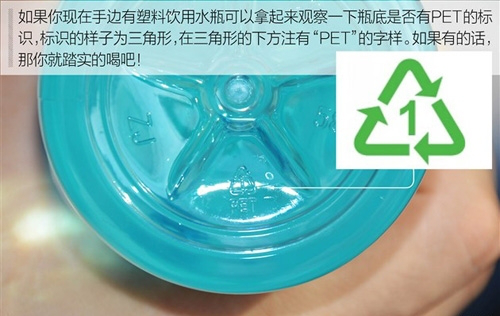 在瓶裝水的瓶子底面一般都有編號(hào),三角形圖案里面有一個(gè)阿拉伯?dāng)?shù)字1,一般的礦泉水瓶都是上圖的1號(hào),其中PET本身沒(méi)有問(wèn)題,性質(zhì)很穩(wěn)定,但不耐熱,受熱或長(zhǎng)時(shí)間接觸釋放出的致癌物質(zhì)就是我們常見的增塑劑,增塑劑不是都有害,但大部分瓶子都加的是鄰苯類的(參加塑化劑的危害)。