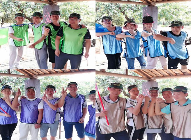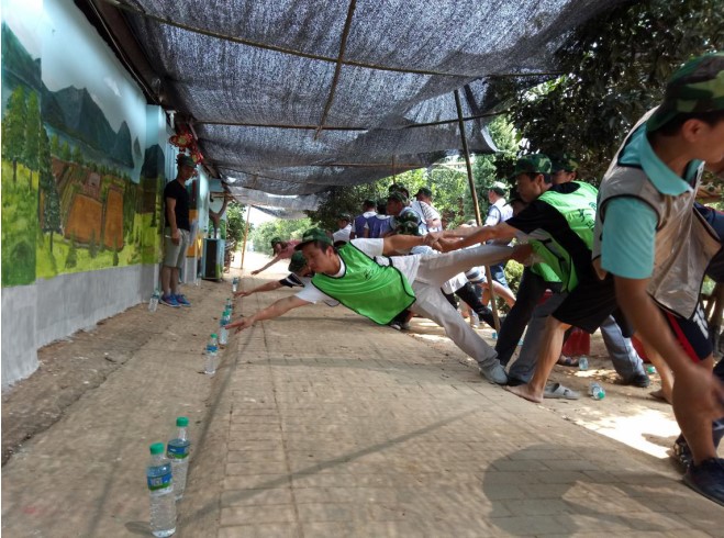 到達(dá)嶺前生態(tài)園拓展基地后,大家被分成紅、黃、藍(lán)、白、橙、綠六隊,并通過各小組的一番頭腦風(fēng)暴,產(chǎn)生了各富特色的隊名和一首首旋律高亢的隊歌。伴隨著“星星隊”、“驕陽隊”、“甜蜜暴擊隊”、”火箭隊”等多個個性鮮明團(tuán)隊的組成,在充滿豪情壯志、嘹亮的團(tuán)隊隊歌下,公司拓展訓(xùn)練活動拉開了序幕。