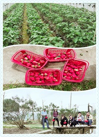 接下來是活動(dòng)的第二個(gè)行程,導(dǎo)游帶我們?nèi)ゲ烧葺?,到達(dá)草莓園后,大家爭先恐后地進(jìn)入大棚里采摘當(dāng)?shù)氐男迈r草莓,草莓形狀各異,看著一顆顆紅彤彤的草莓,十分誘人采摘,進(jìn)入草莓棚一會(huì)后,大家都心滿意足的提著一籃籃草莓出來。